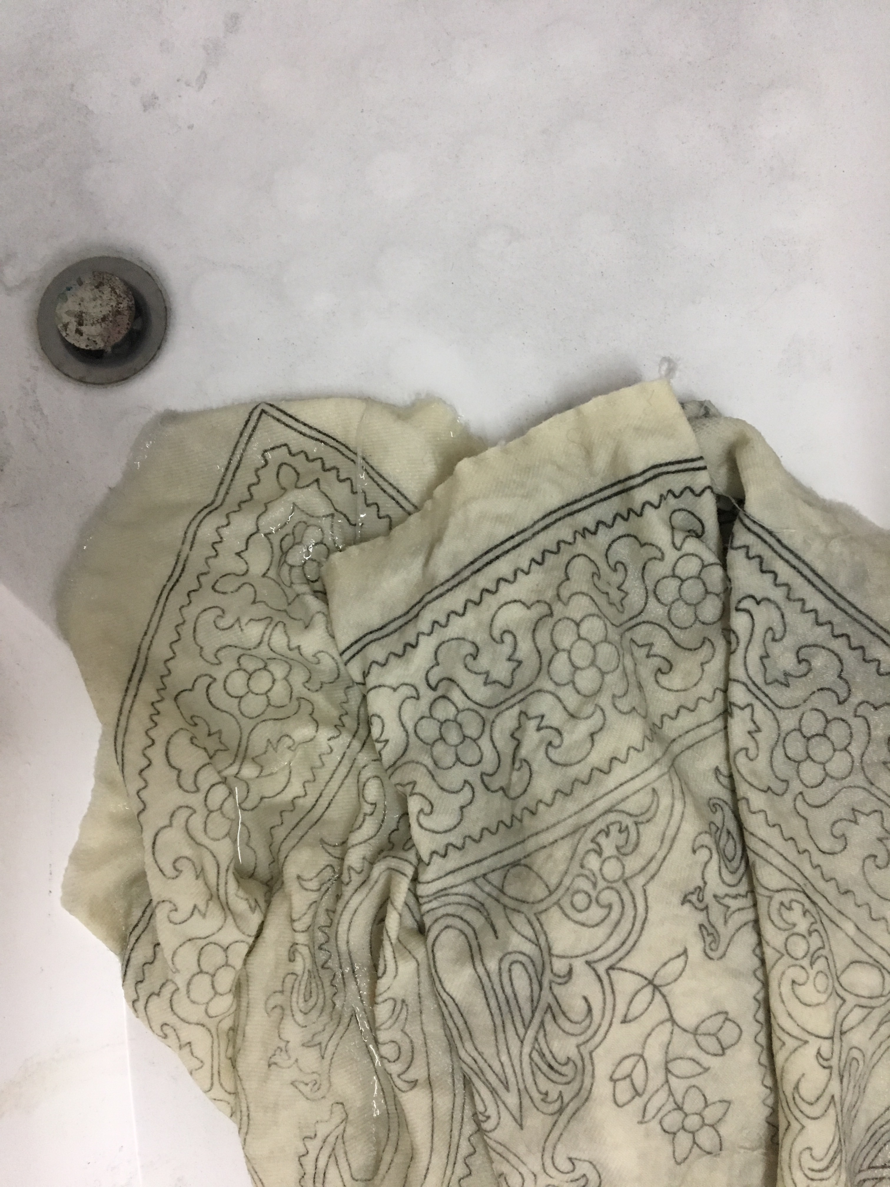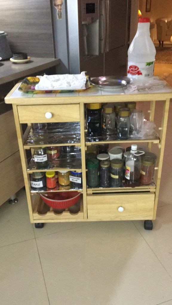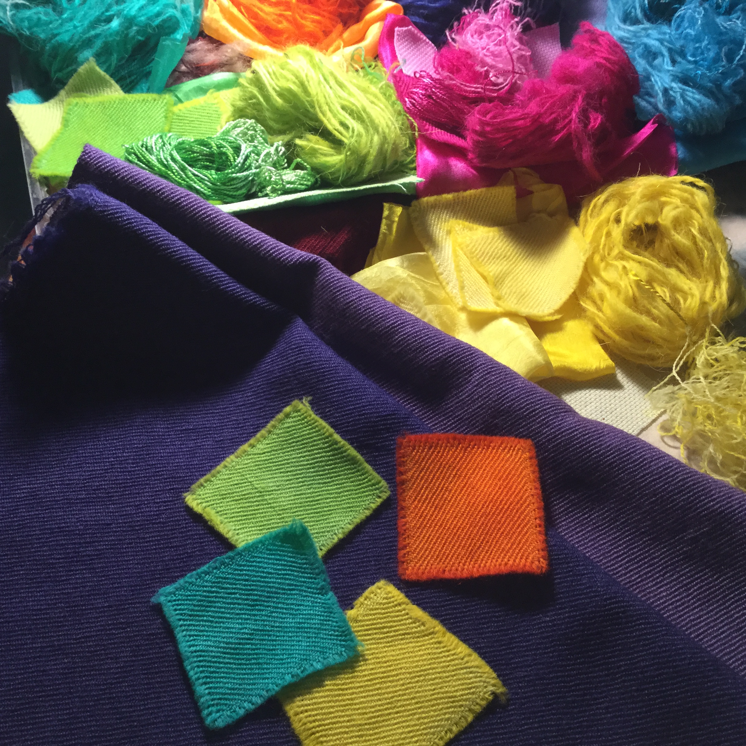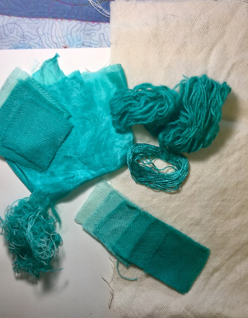 Dyeing the woolen twill fabric which is traditionally used for Pateh Doozi ,I created a new colour scheme . I also dyed a variety of yarns and fibres to use in further projects which made the project even more fun ! I really wanted to see how well the fabric would dye and experiment with possibilities. The woolen Arriz fabric takes the dye extremely well.