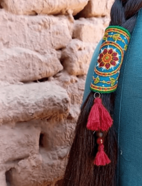 Pateh consist of a woolen fabric or shawl called ‘Arriz’ اریز and the embroidery threads which as usually of the same woolen yarns.