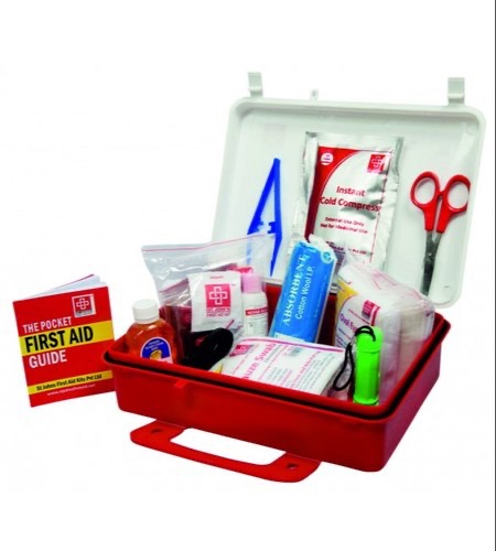 Having a First Aid Box or Cabinet is imperative and it should include the minimal of : liquid antiseptic / pain killers/ sterile gauze / sterile cotton / burn cream / band aid